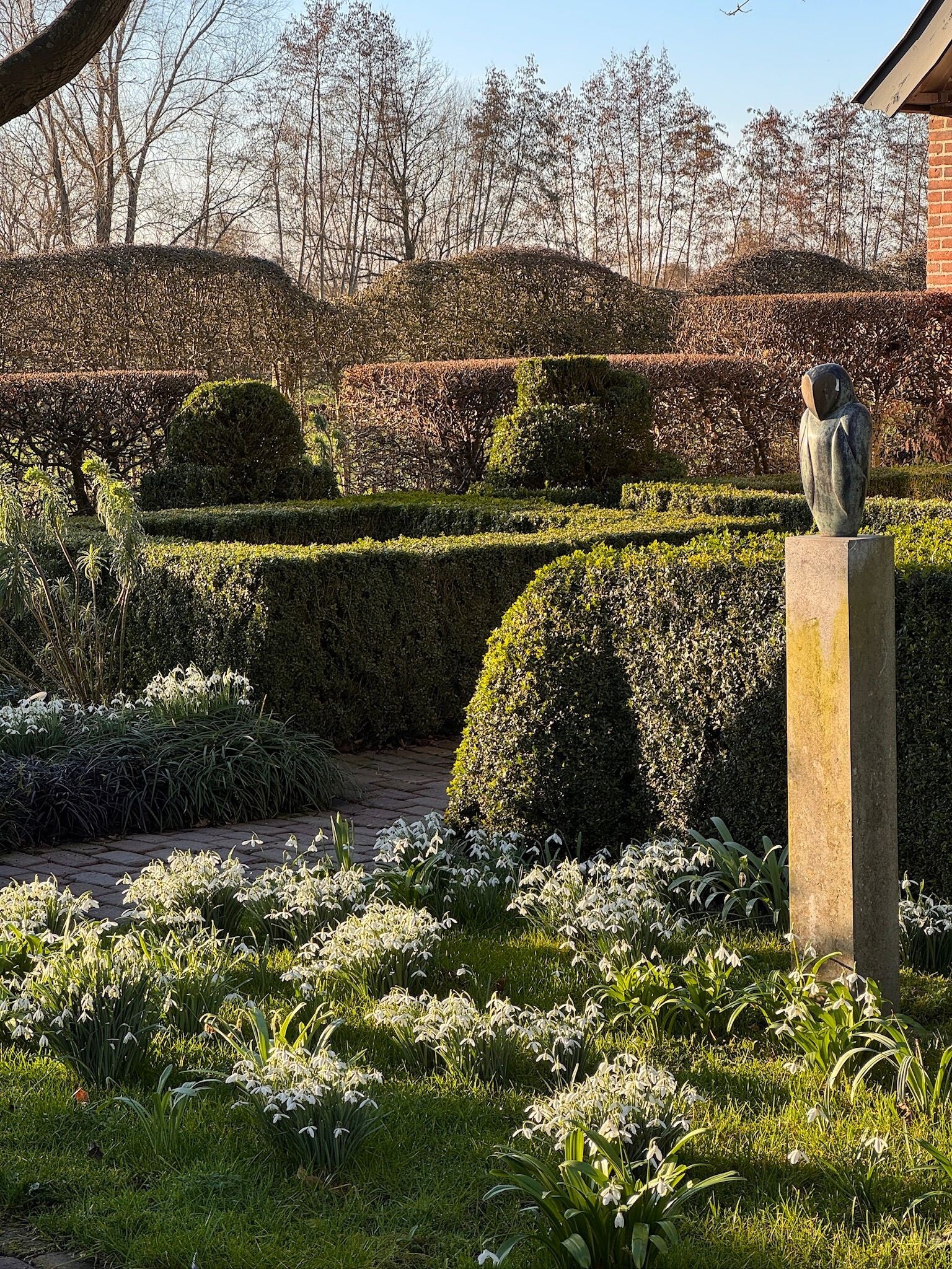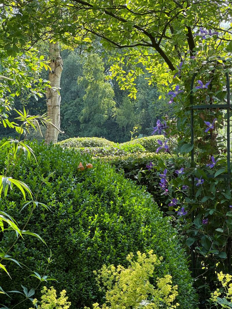 Een wandeling over het erf, langs paddenpoel, door boomgaardjes, stilstaan bij bijzondere planten in een variëteit aan borders. Een historisch bakhuisje als een 19e eeuws "tiny house". De ene schuur als thuis voor vader en moeder kerkuil, de andere overwoekerd door de in juni geurende Rosa Himalayan Musk.